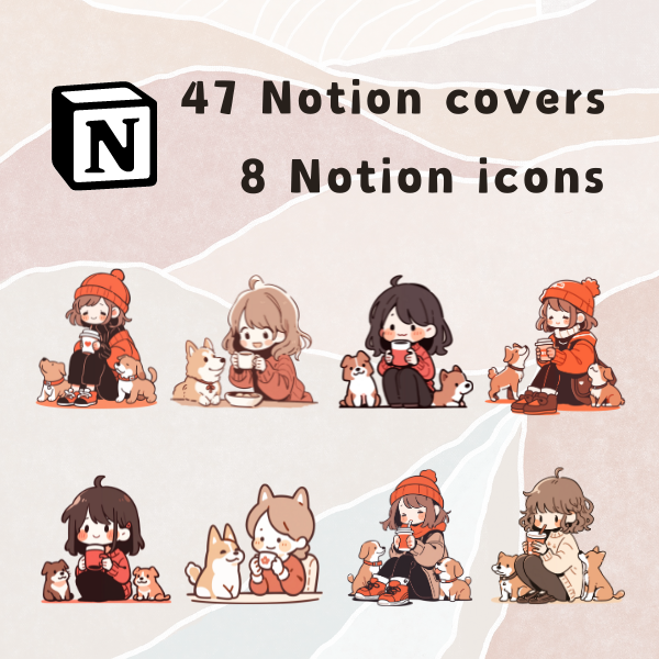 Notion icons and Notion covers for Notion Templates | Dog mom themed icons | Checker and Gingham texture Notion covers|Aesthetic Notion
