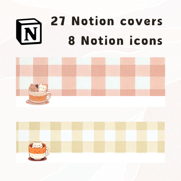 Notion icons and Notion covers for Notion Templates | Cat themed icons | Checker and texture Notion covers|Aesthetic Notion|Cat Notion icons