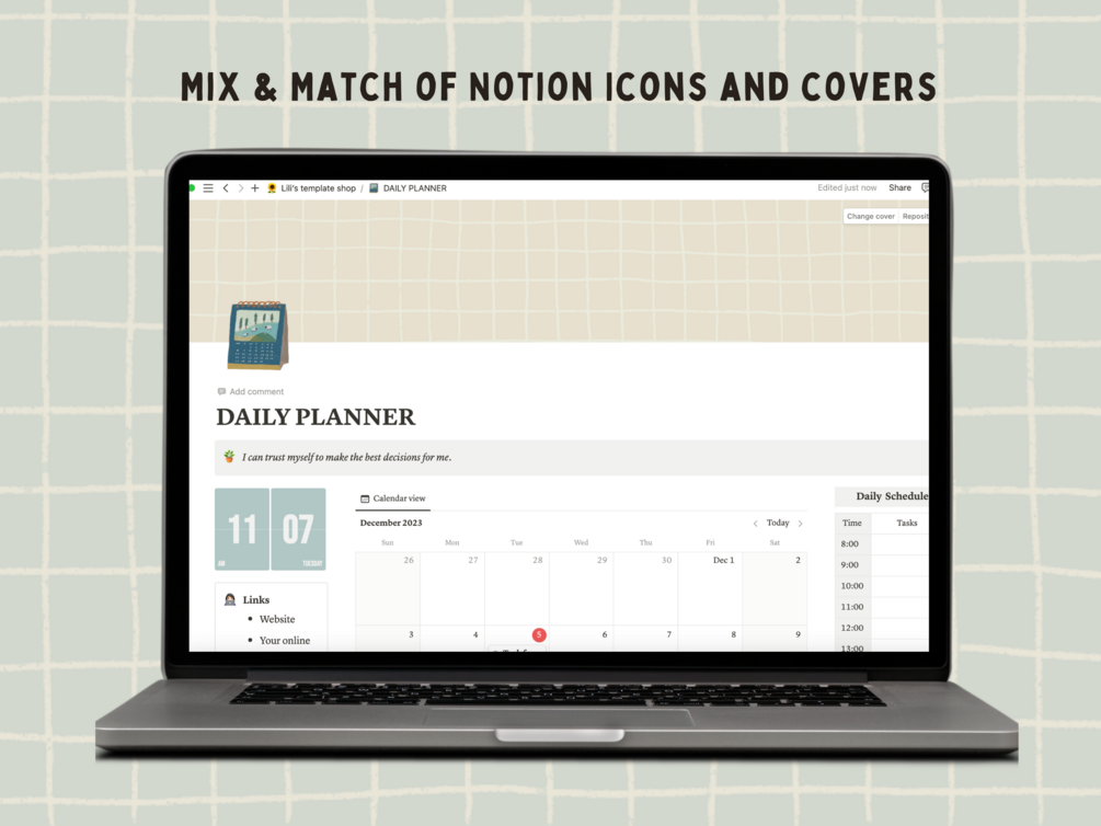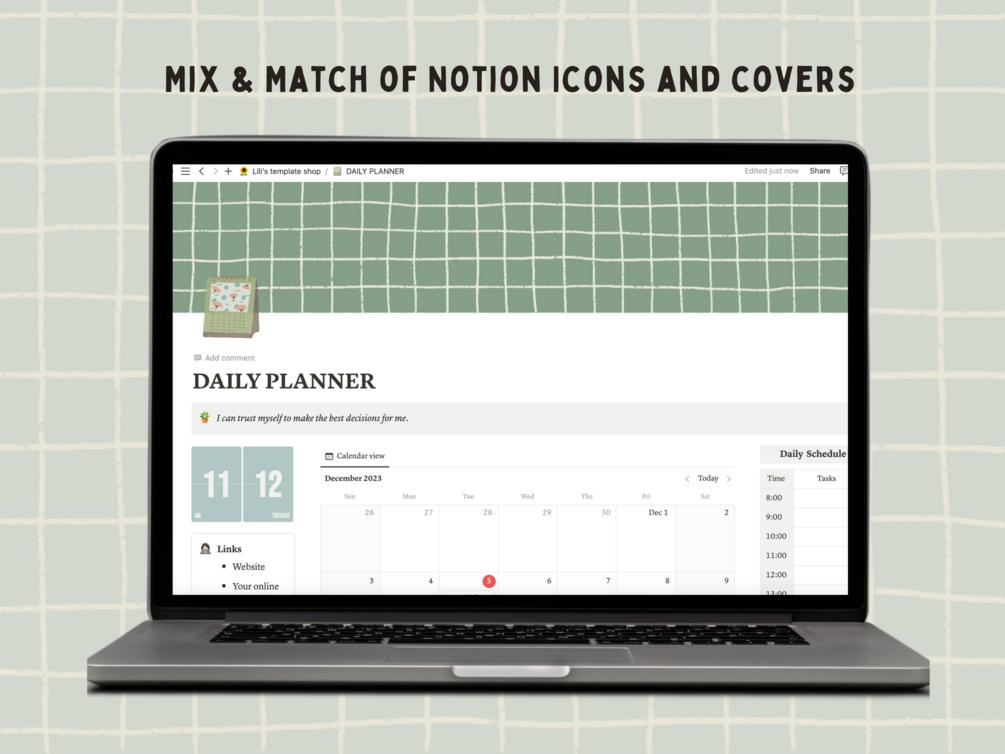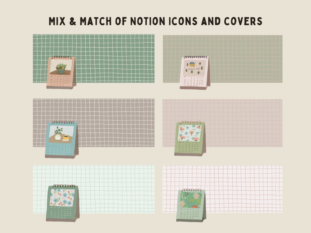 Notion icons and Notion covers for Notion Templates | Checker Notion covers|Calendar themed icons of Procreate doodle | Aesthetic Notion